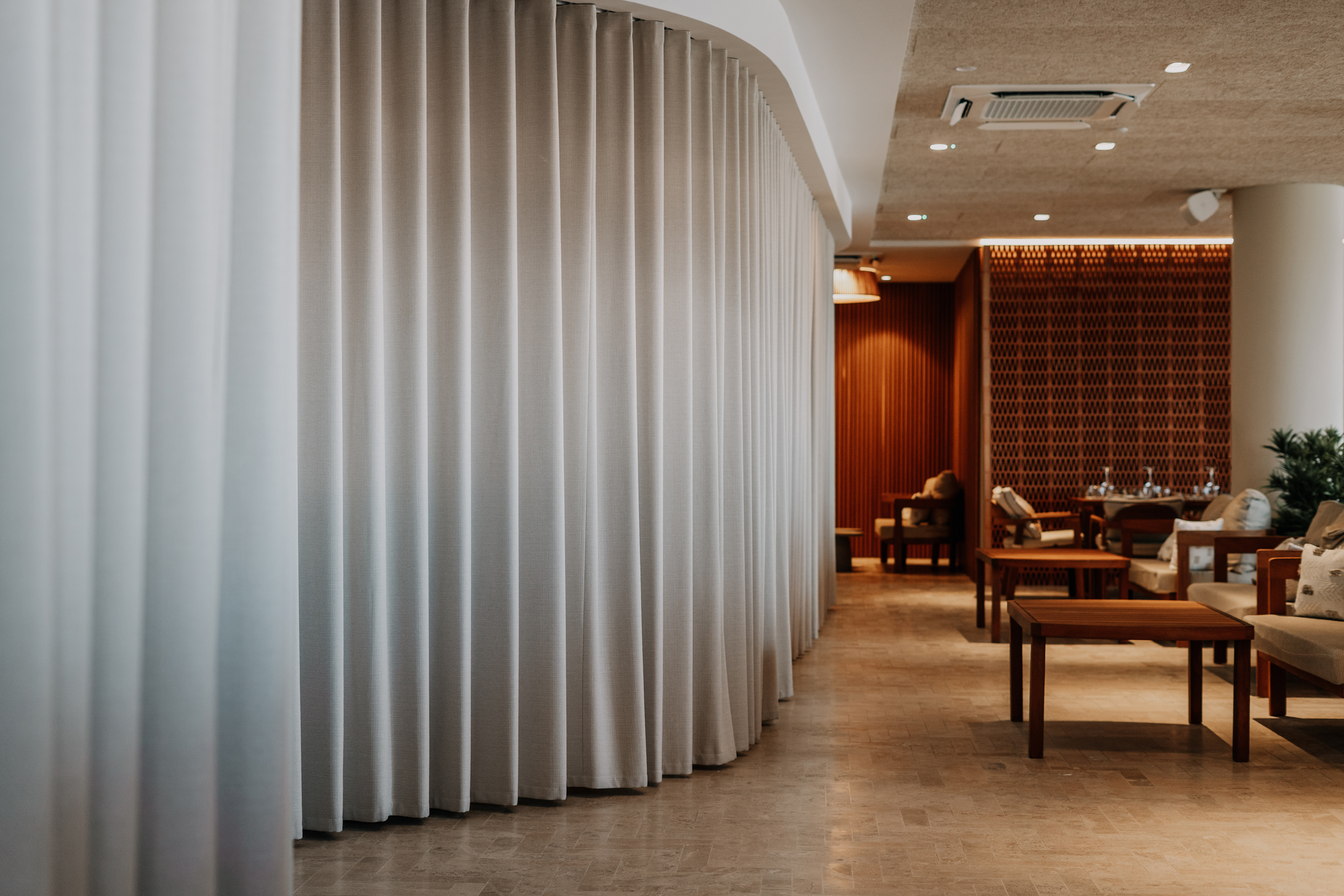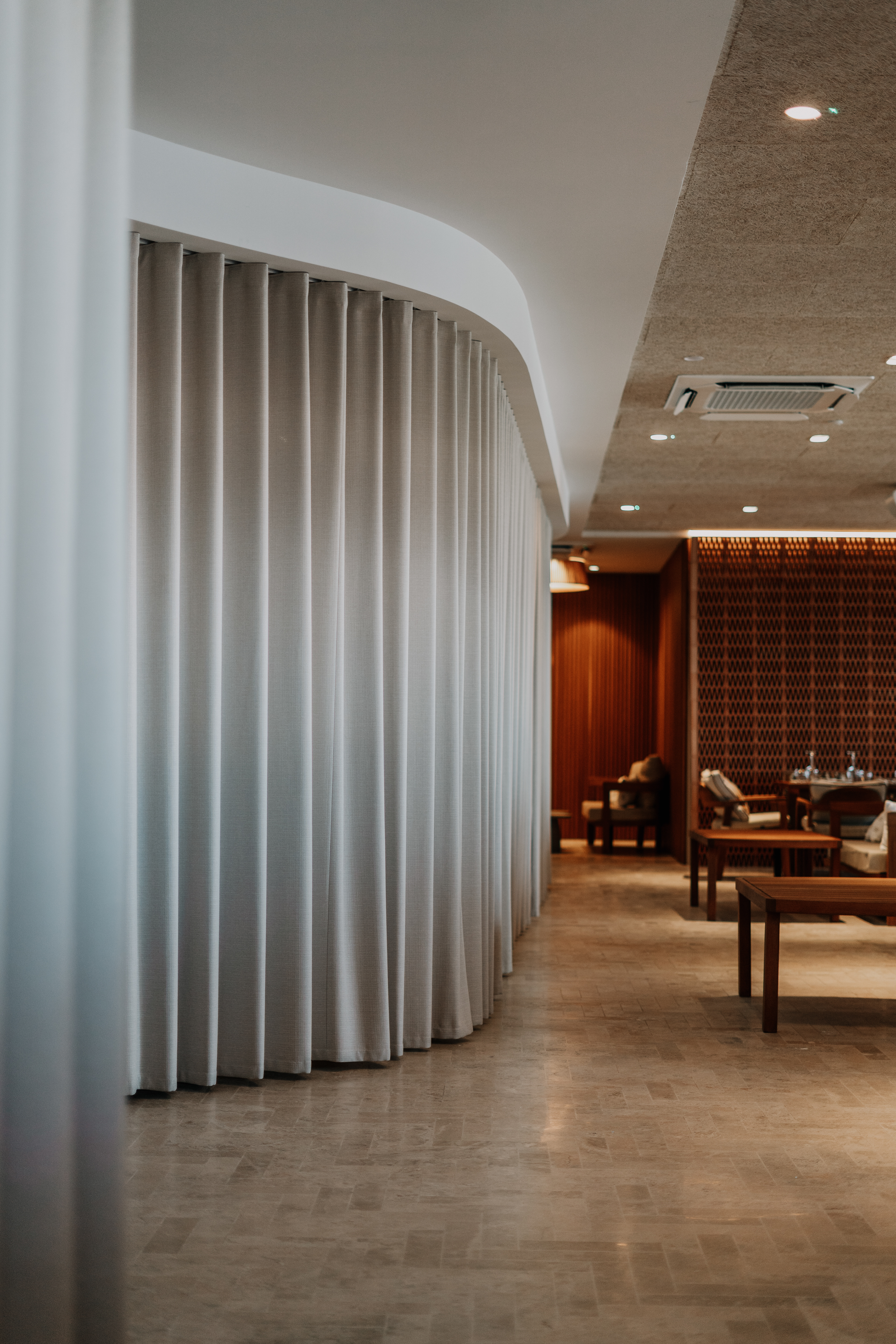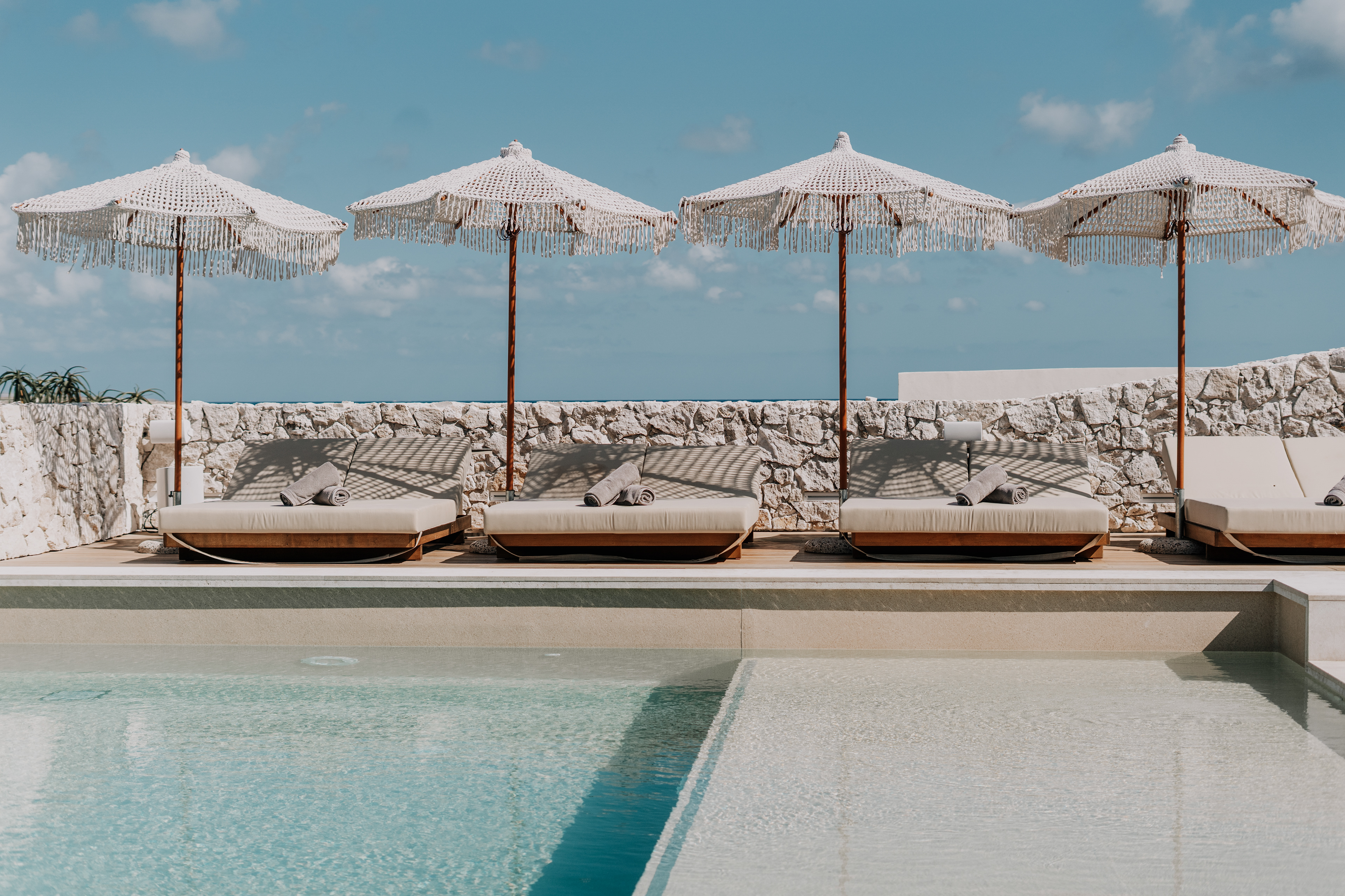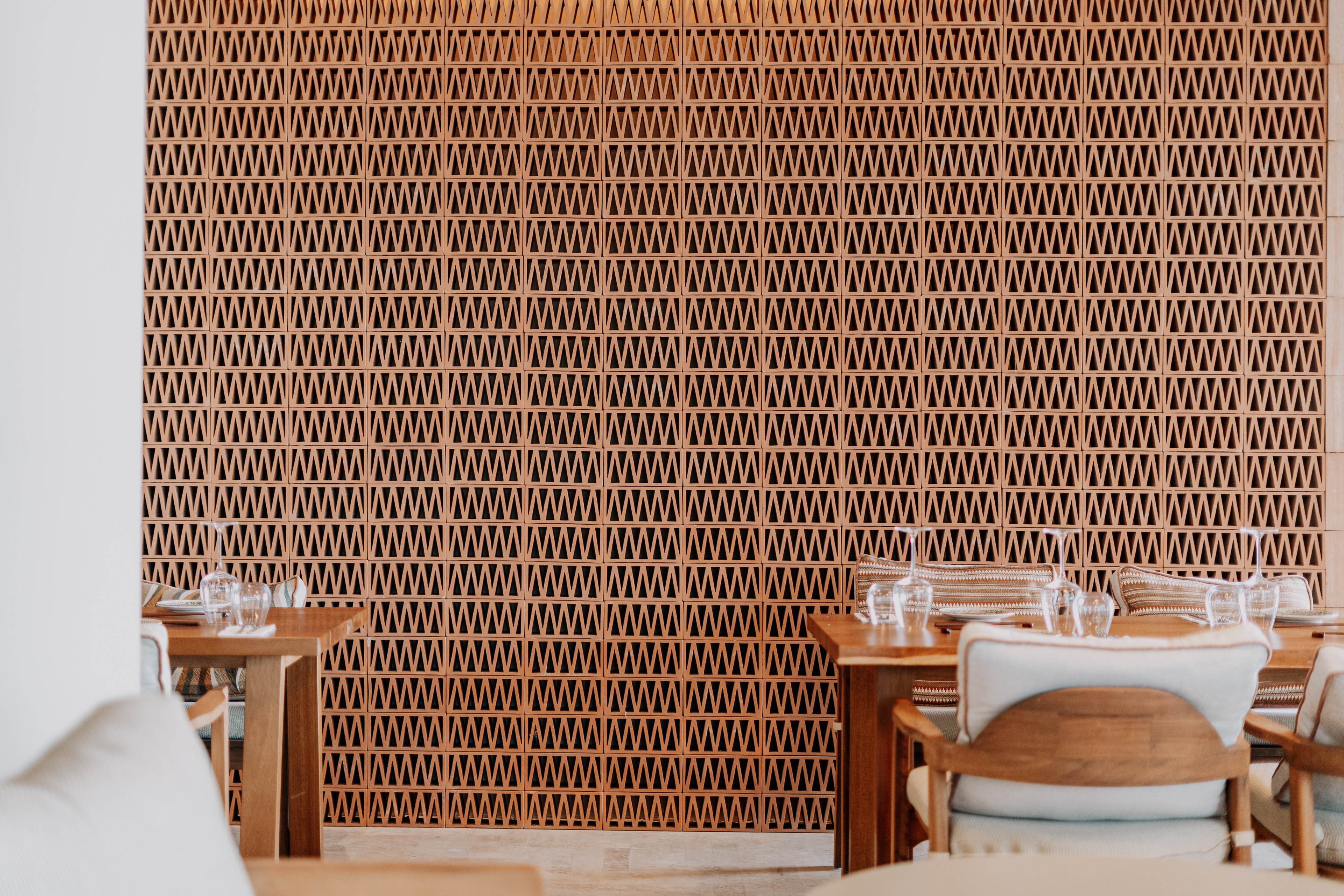 The terrace hovers above the shoreline — stone beneath bare feet, sky folding into the sea. Glasses catch the light; shadows slip between sculptural chairs. A hand lingers on the curve of a cocktail glass, music hums low, and conversations feel wrapped in silk.